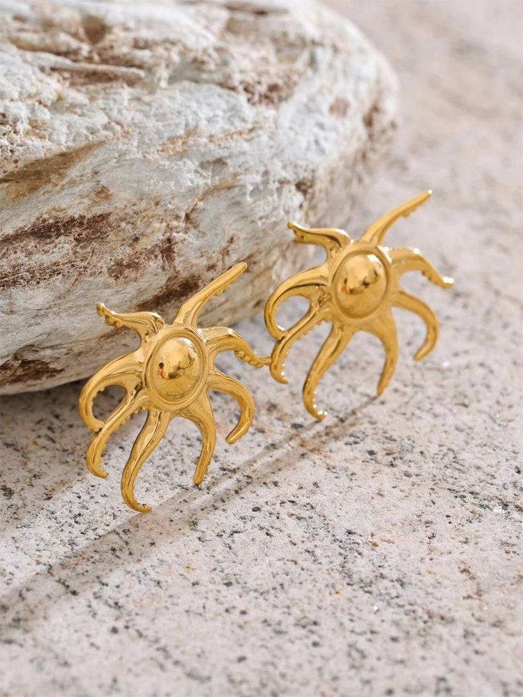 Crafted from durable stainless steel with a platinum or gold finish, these stud earrings feature a unique tentacle-inspired geometric design. The push-back closure ensures a secure and comfortable fit for daily wear. Lightweight and trendy, they make an ideal accessory for summer holidays or casual outings. Resistant to high-concern chemicals, these earrings offer lasting shine and style.