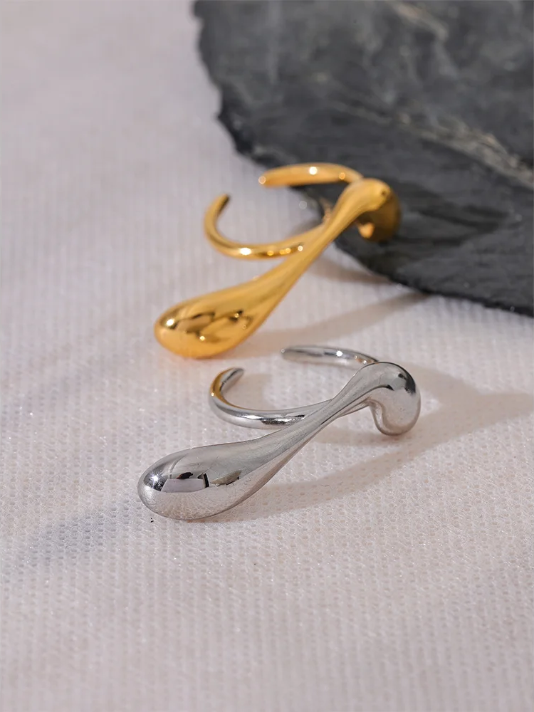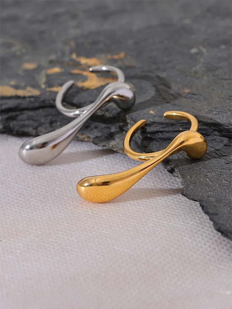 Crafted from durable stainless steel with 18k gold plating, this open ring showcases a bold geometric design that captures attention. Its rust-proof finish ensures lasting shine and wear resistance, making it ideal for everyday fashion or special occasions. The adjustable open band offers a comfortable fit, while the sleek, modern style adds a distinctive touch to any outfit. Perfect for those seeking unique, trend-forward jewelry with a personalized flair.