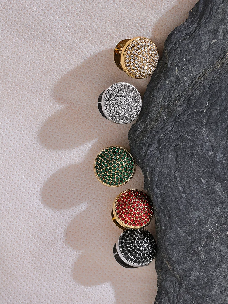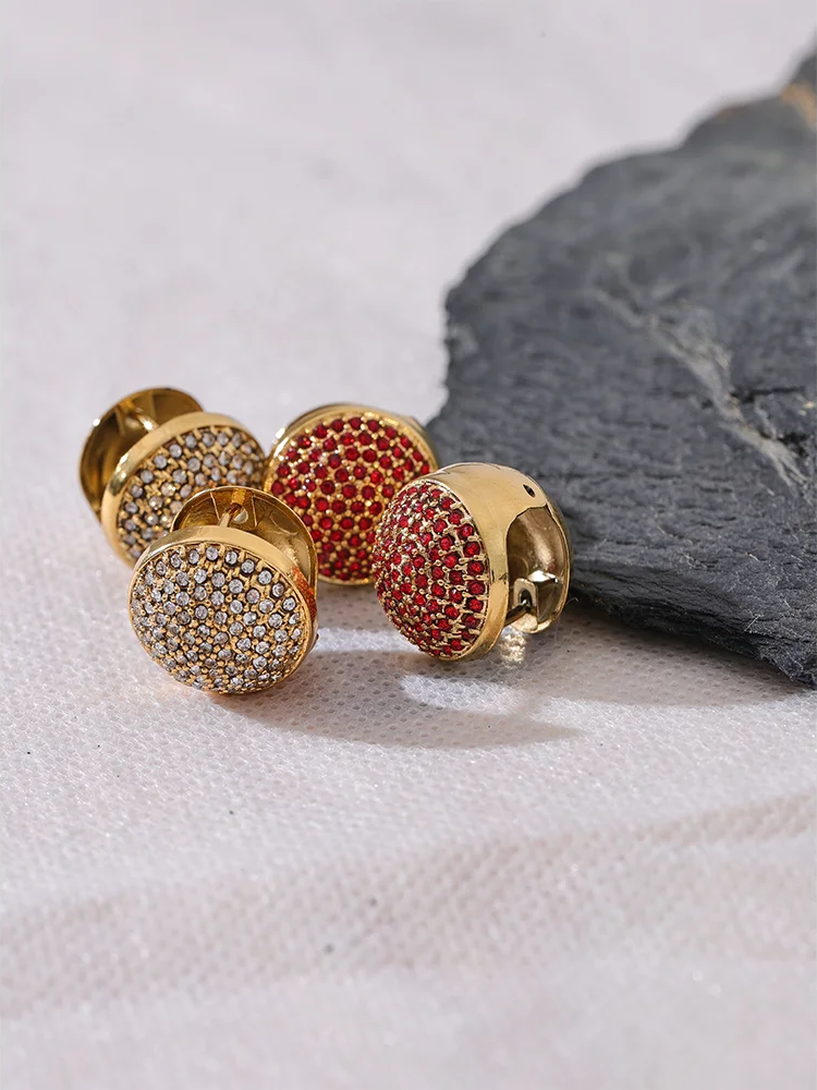 Round hollow hoop earrings crafted from durable stainless steel with a fashionable PVD real gold plating finish. Each pair is adorned with vibrant multi-color cubic zirconia stones, creating a sparkling and eye-catching effect. Designed to be waterproof, these earrings offer lasting shine and versatility for daily wear. The lightweight construction ensures comfortable all-day use, making them a trendy accessory for various occasions.