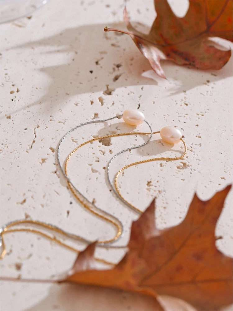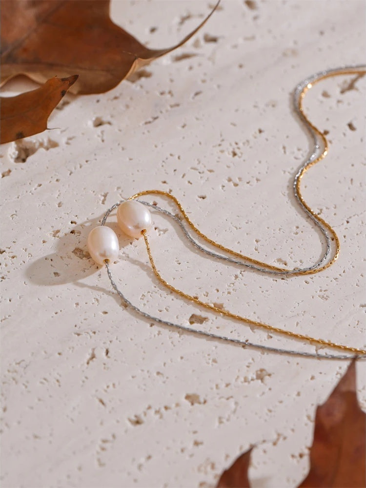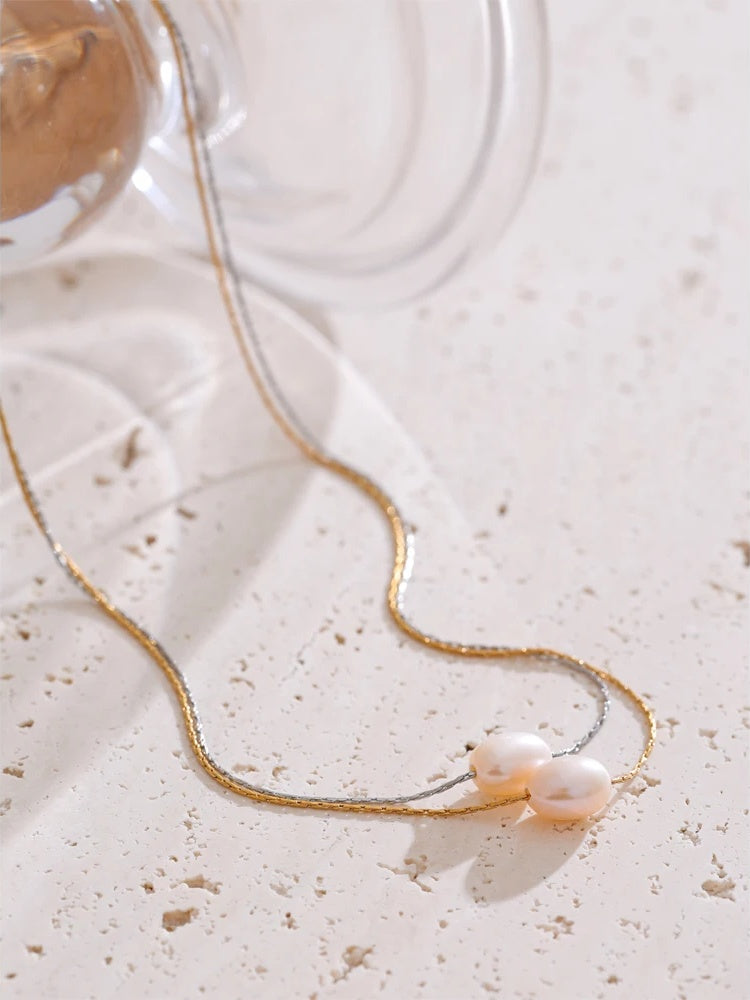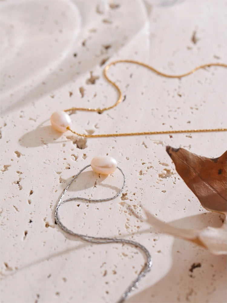 A delicate pendant necklace featuring a lustrous natural freshwater pearl set on a sleek, gold-toned stainless steel chain. The minimalist design highlights the pearl’s smooth, organic shape, offering a modern and elegant accessory suitable for everyday wear. Crafted with durable, waterproof materials and finished with a PVD real gold plating, it maintains its shine and quality over time. Perfectly balanced between trendy and timeless, this piece complements a variety of styles and occasions.