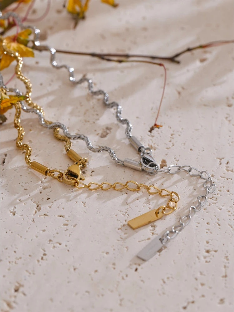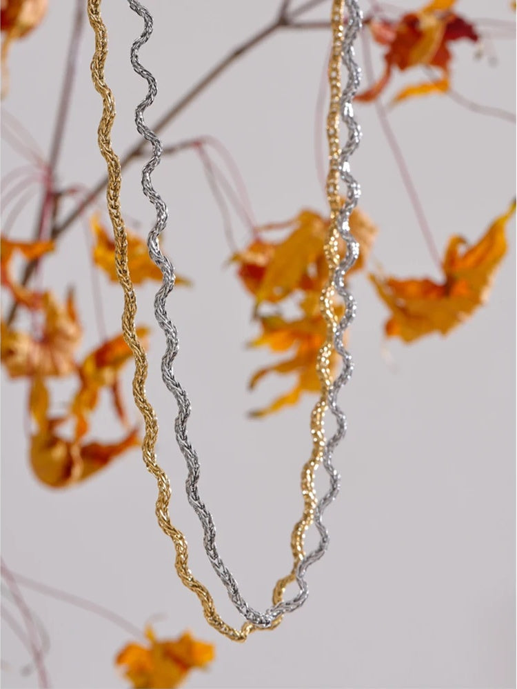 Crafted from durable stainless steel with a PVD real gold plating, this necklace offers a stylish and long-lasting finish. Its unique wavy chain design adds a geometric, trendy touch suitable for parties and everyday wear. The waterproof feature ensures it maintains its shine and quality over time. Lightweight and comfortable, it is an ideal accessory for fashion-forward women seeking a chic collar necklace.