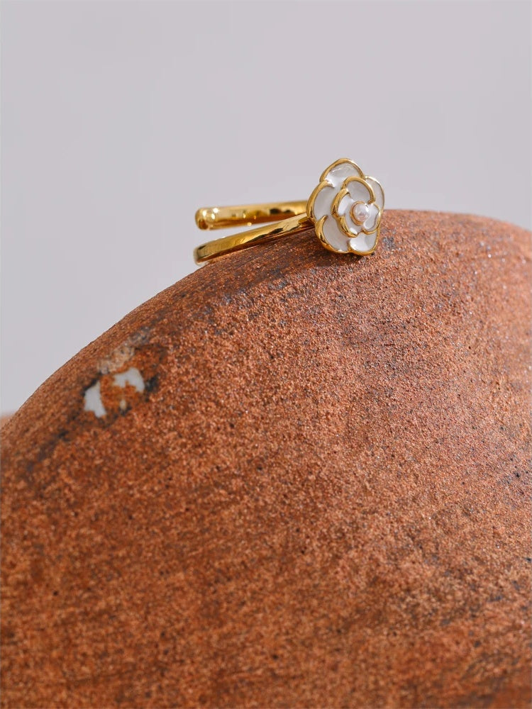 Pearl Enamel Flower Adjustable Charm Ring