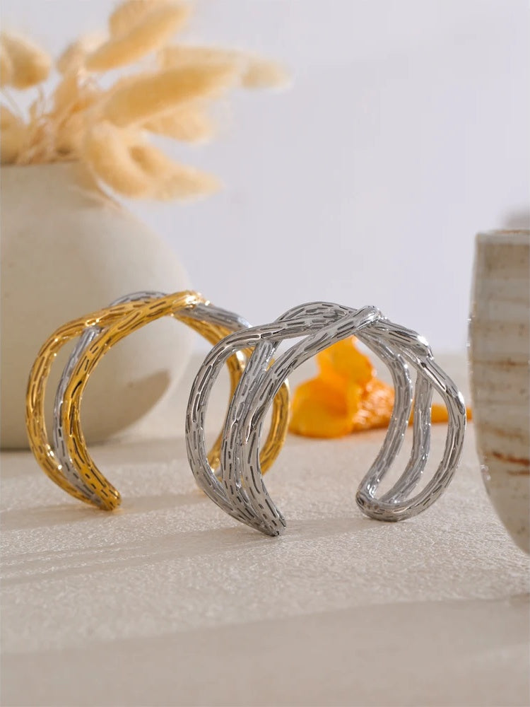 - Design: Intertwined geometric silhouette with a softly textured surface that catches the light without overpowering your look.