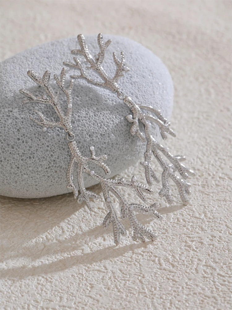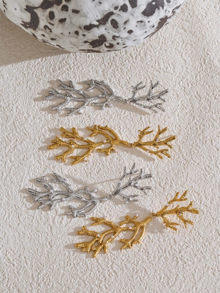- Design: Intricate plant leaf with a bold, geometric drop silhouette