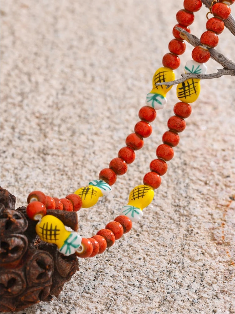 - Materials: Red ceramic beads; yellow pineapple charms; stainless steel components