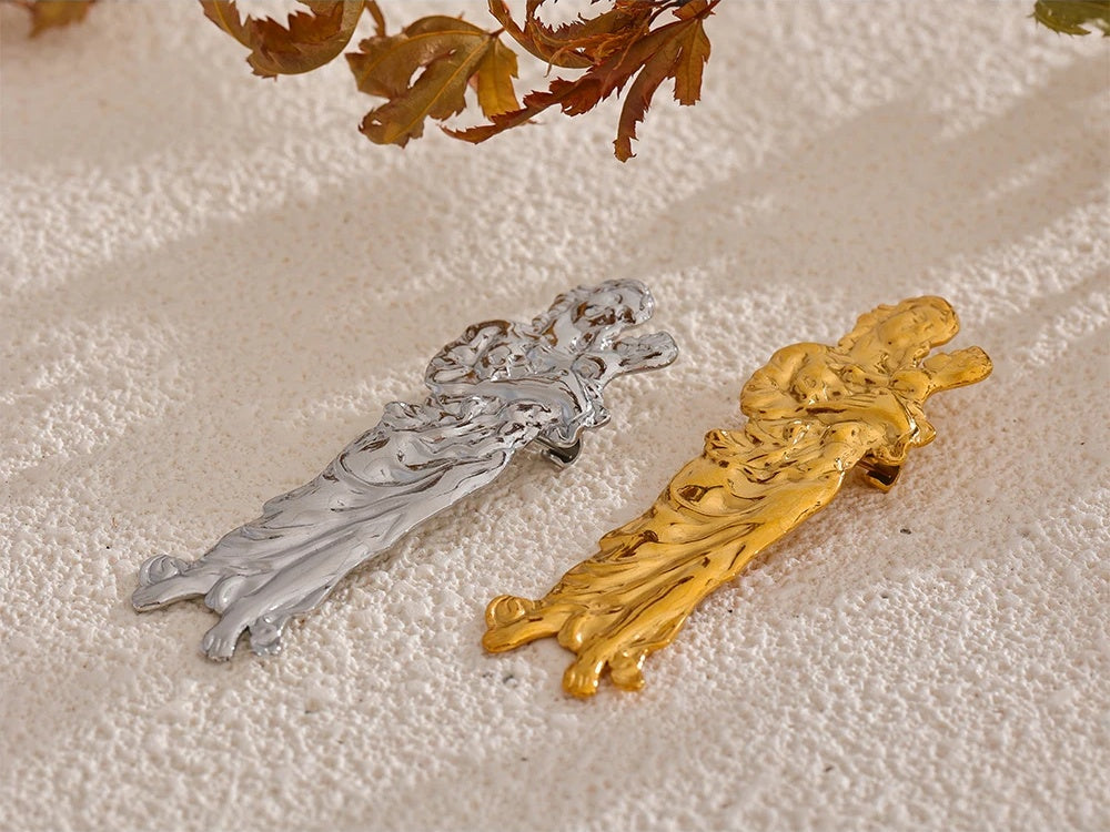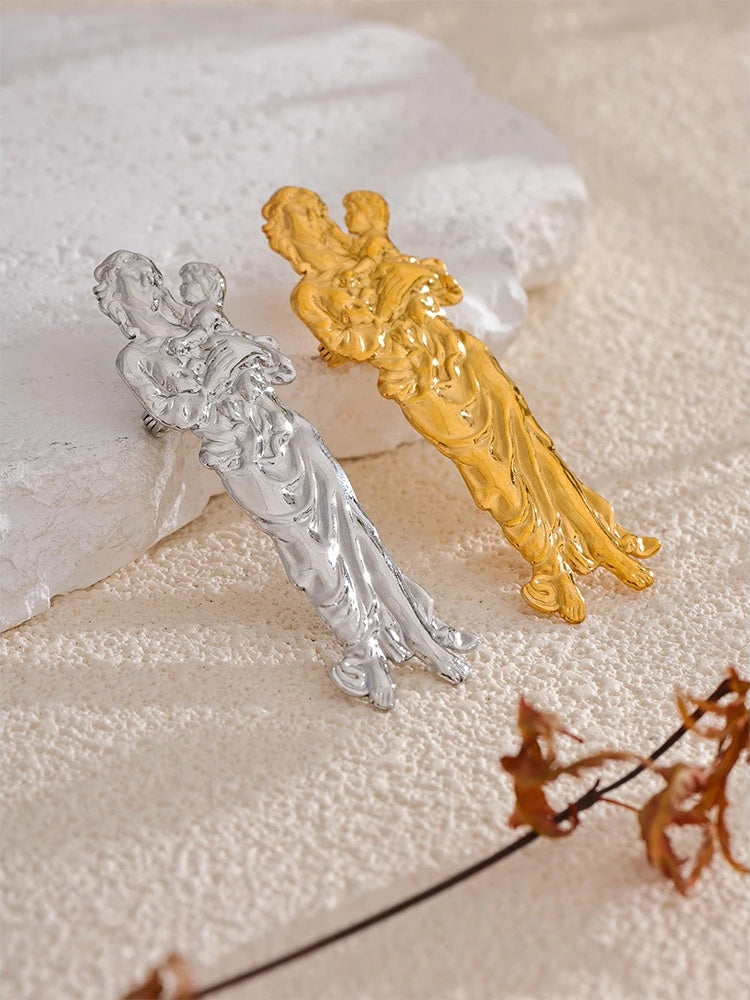 Streamlined and lapel-friendly, this stainless steel brooch sits neatly on blazers, coats, scarves, and totes. Its sleek profile makes it easy to layer with other pieces—style it alongside your favorite handcrafted hoops, gold-plated earrings, or dainty gemstone jewelry for a cohesive, polished look.