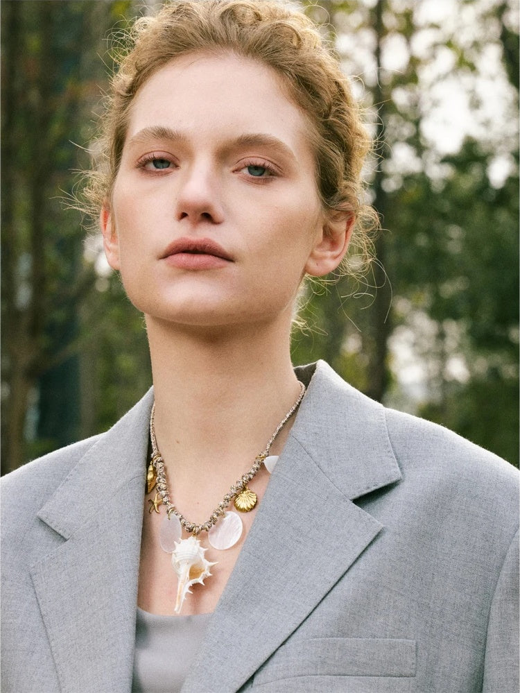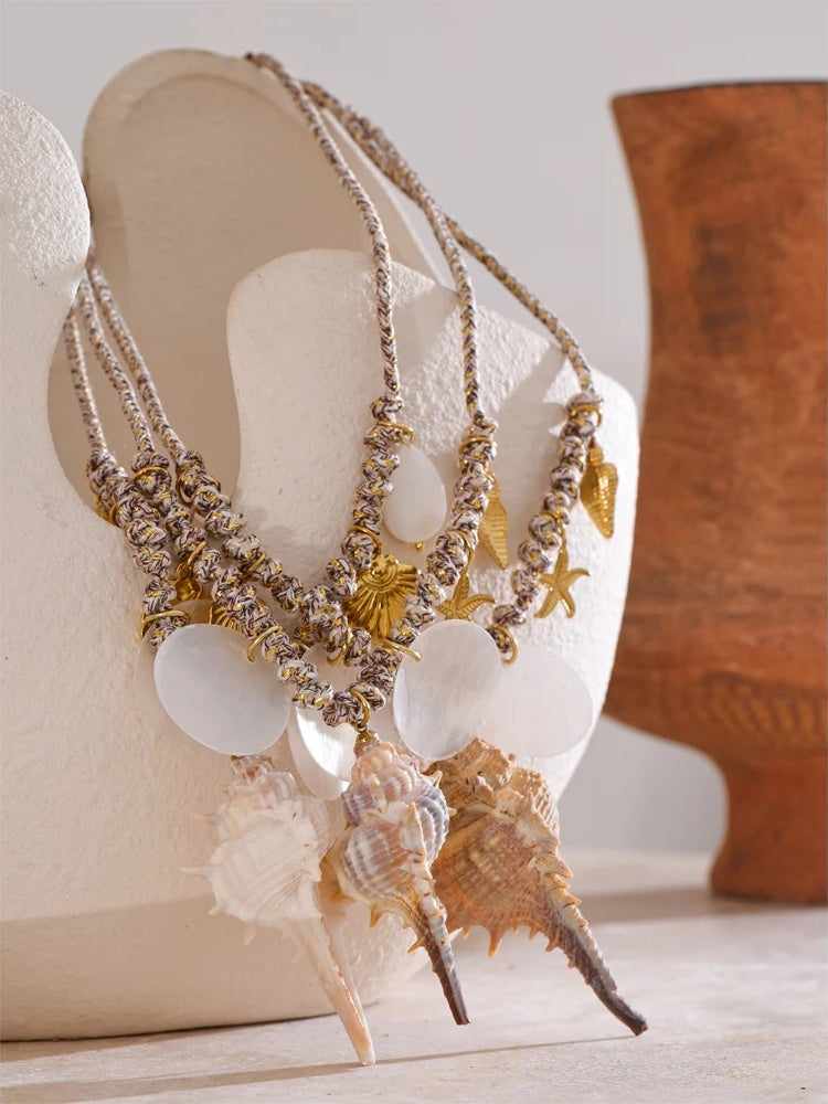 Bring a touch of the shoreline to every day with this ocean-inspired pendant necklace. Handcrafted with natural conch shells and accented by delicate starfish and shell motifs, each piece celebrates organic texture and soft, sea-washed hues. Set on a stainless steel chain with a PVD real gold plating, it offers a warm, gold-toned finish that’s stylish for summer and versatile year-round.