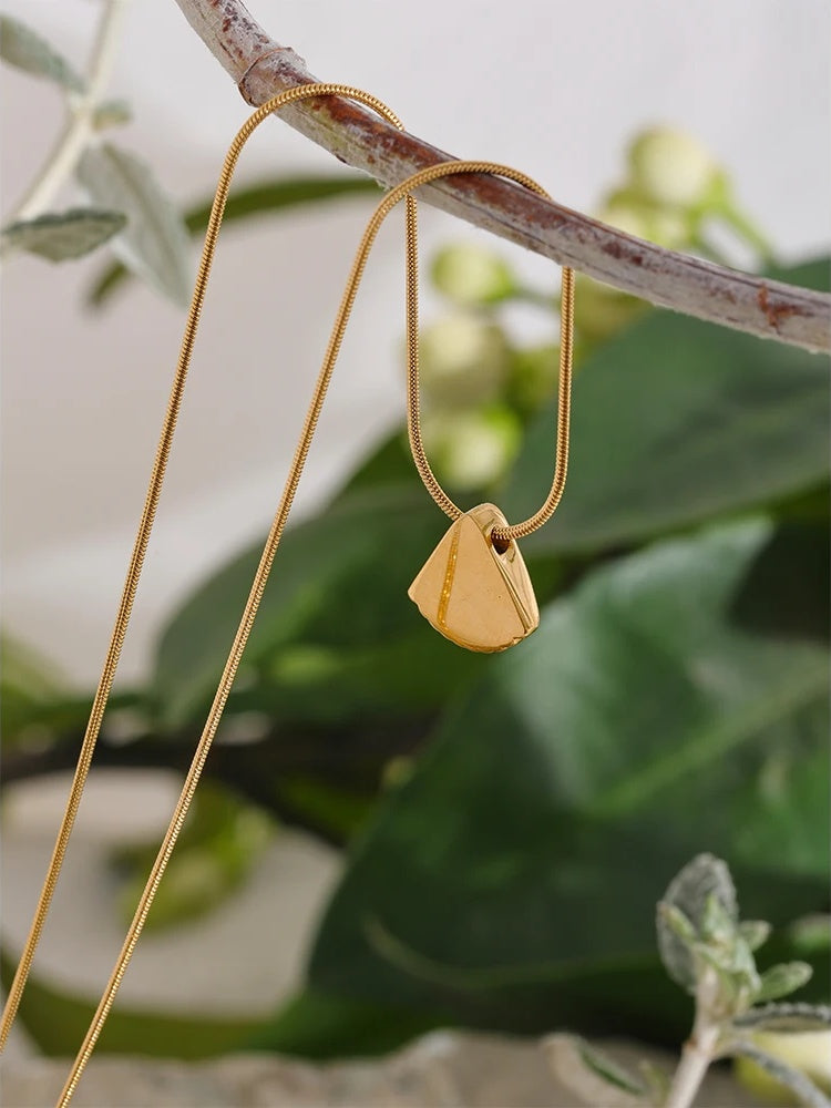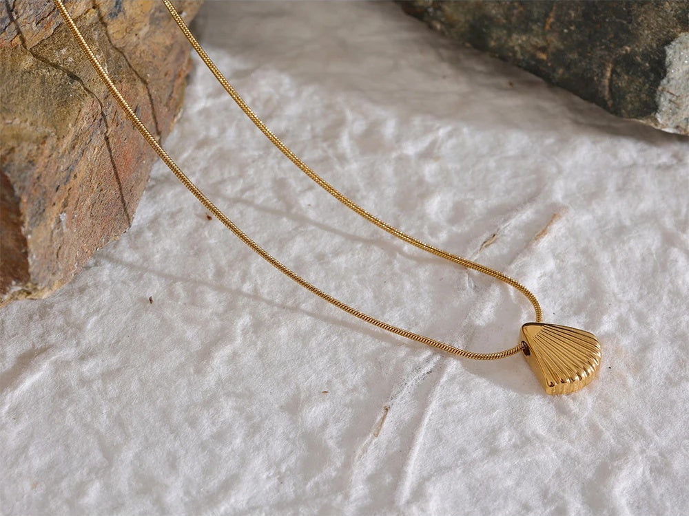 Crafted from stainless steel with a PVD real gold plating, this shell-shaped pendant offers a sleek, minimalist design that complements any outfit. Its geometric form adds a trendy edge, while the waterproof finish ensures durability for everyday wear. Suitable for all occasions, the necklace combines fashion-forward style with long-lasting quality.