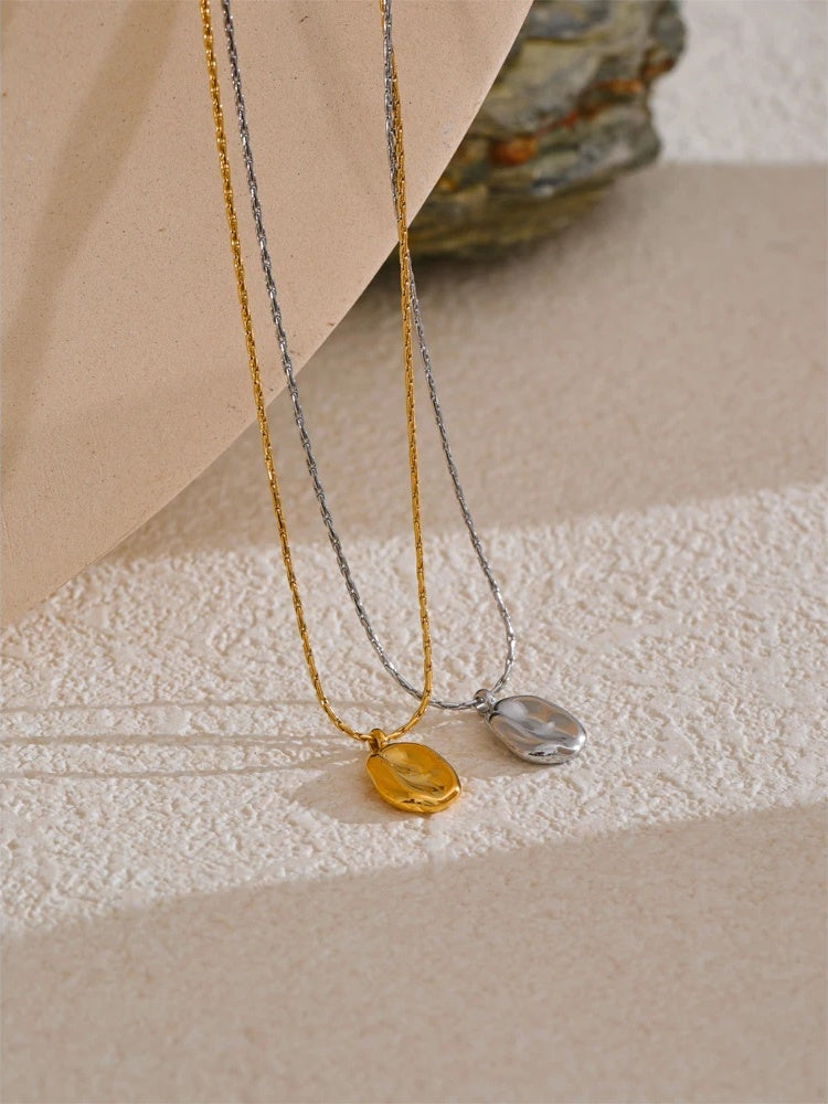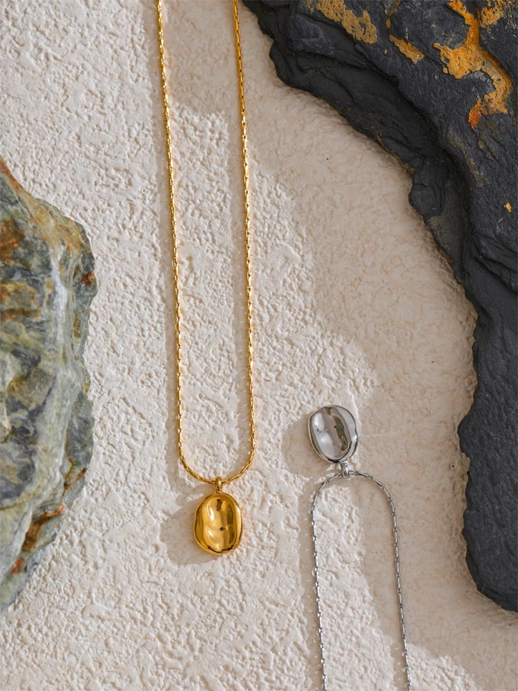 Crafted from durable stainless steel, this pendant necklace showcases a minimalist square hammer design with a polished finish. Available in both gold and silver tones, the piece features 18K PVD plating for enhanced durability and shine. Its geometric shape adds a modern edge to any outfit, making it a versatile accessory for everyday wear. Lightweight and comfortable, it pairs seamlessly with various styles while maintaining a trendy look.