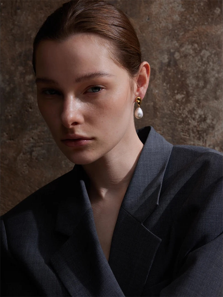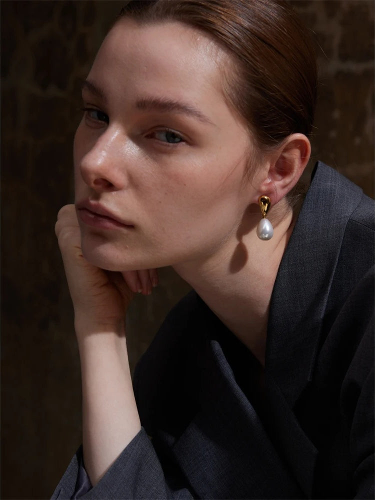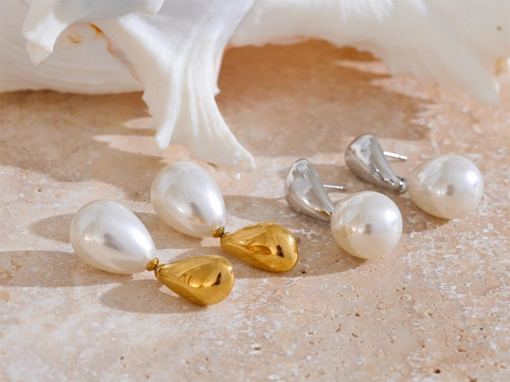 Featuring a striking geometric design, these drop earrings combine lustrous simulated pearls with polished stainless steel for a sophisticated look. The PVD real gold plating adds a luxurious finish that enhances durability and shine. Lightweight and versatile, they offer an elegant accessory option suitable for daily wear or special occasions. Available in both gold and platinum tones to complement a variety of styles.