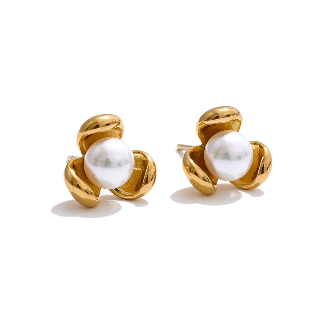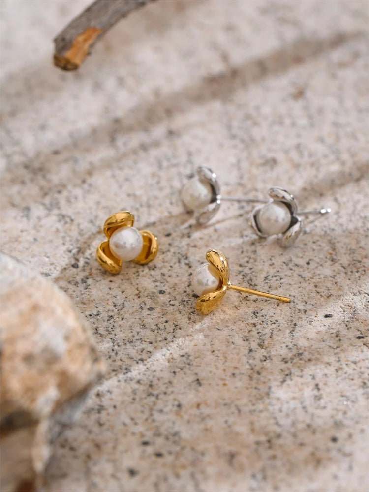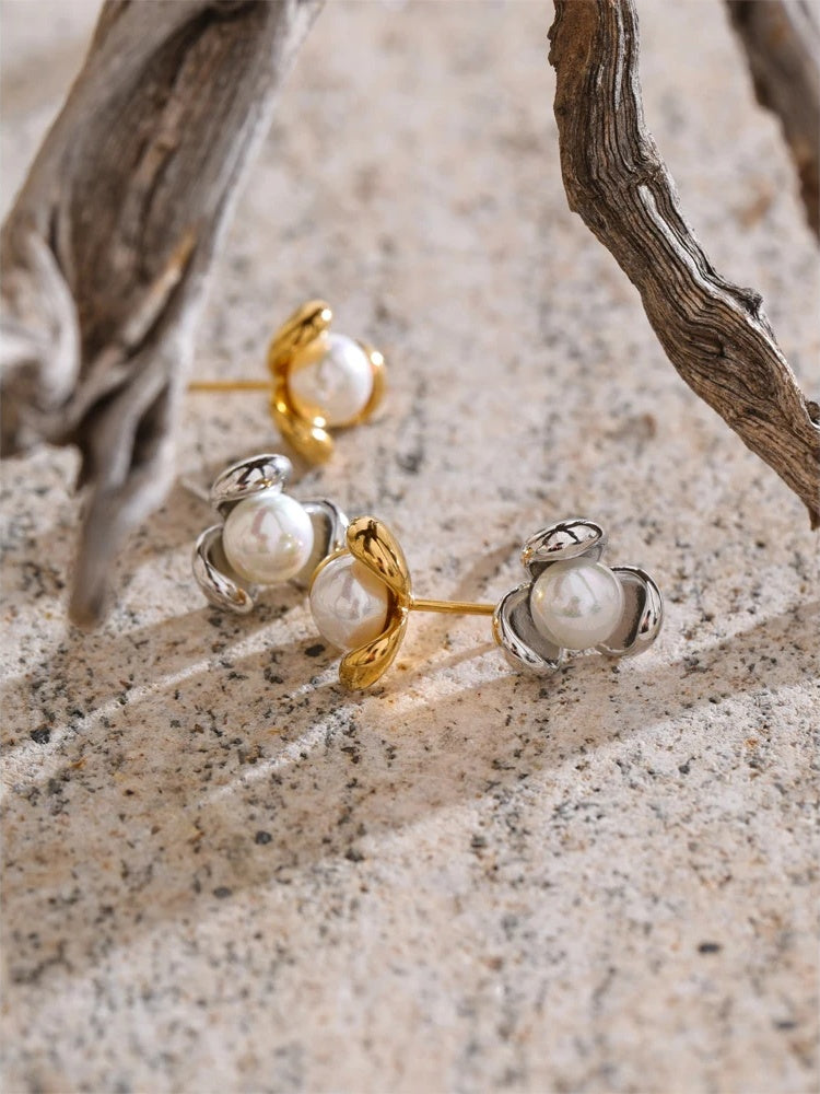 Delicately crafted with simulated pearls nestled within a polished flower-shaped setting, these stud earrings offer timeless elegance for any occasion. Made from durable 316L stainless steel and finished with a PVD real gold or platinum plating, they provide lasting shine and resistance to wear. The secure push-back design ensures comfortable daily wear, while the versatile style complements both casual and formal looks effortlessly.
