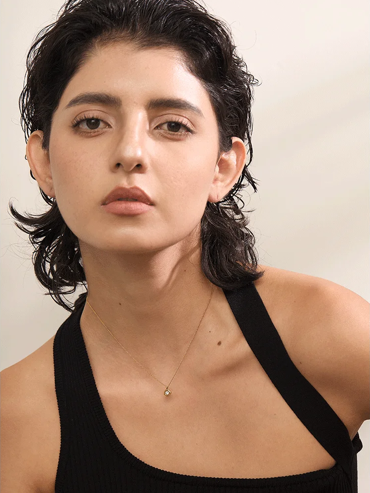 - Design: Petite, geometric pendant—clean lines for a timeless, minimalist look