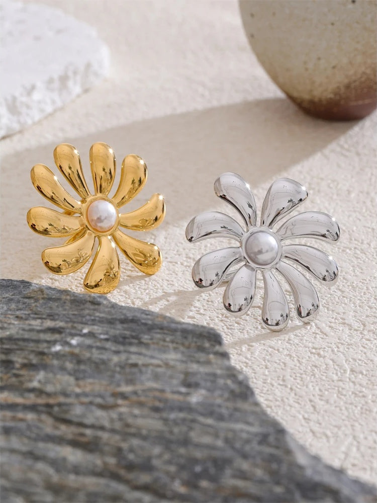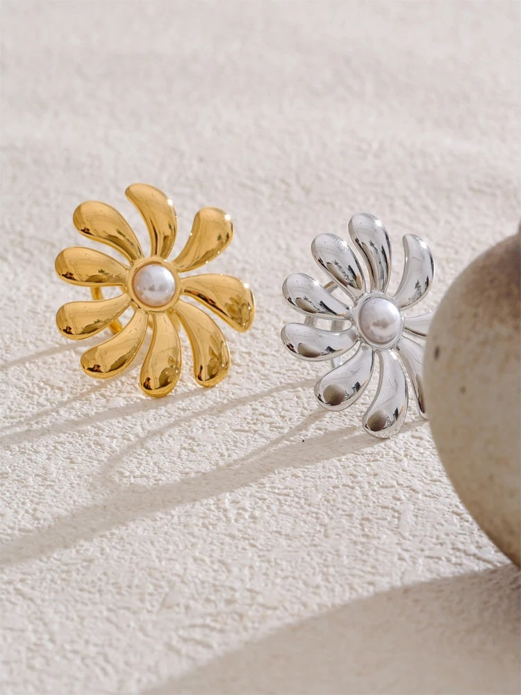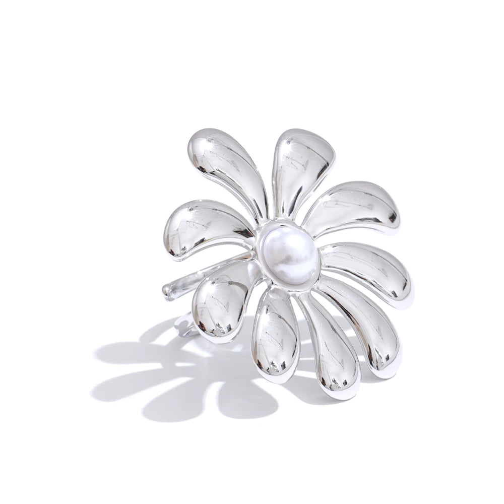 Refined and effortless, this adjustable flower ring brings a touch of polish to every day. Crafted from premium stainless steel and finished with a luminous platinum PVD coating, it showcases a smooth floral silhouette crowned by a single pearl accent—subtle shine you can wear from work to weekend.