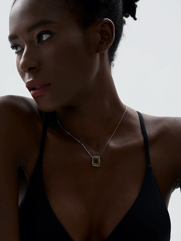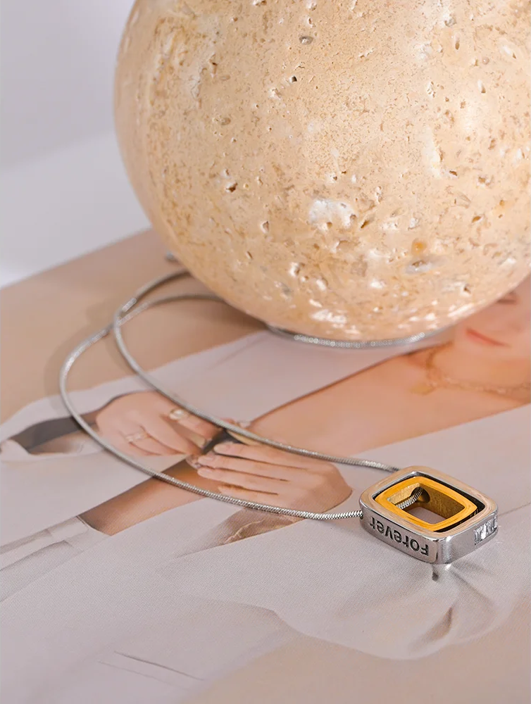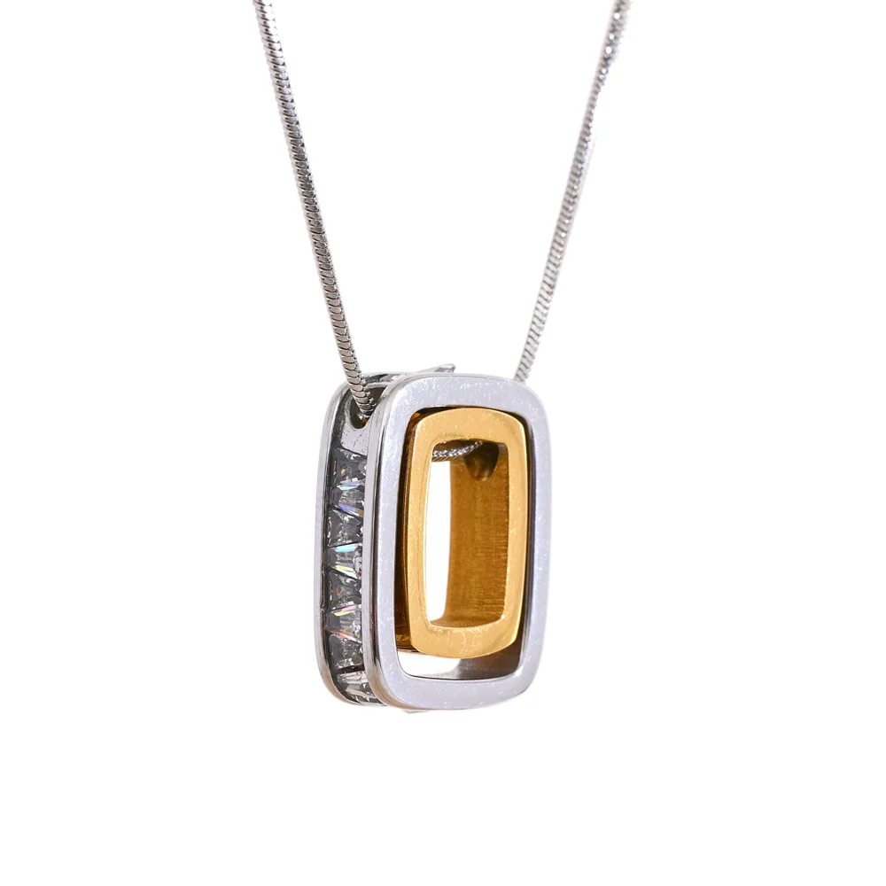 Crafted from durable 316L stainless steel, this pendant features a double-layered square hollow design with a sophisticated dual-tone finish. The outer layer is accented with sparkling cubic zirconia stones, adding subtle brilliance to the piece. Electroplated with PVD real gold plating, the pendant offers a contemporary and trendy look suitable for all genders. Its versatile design complements a variety of styles, making it a versatile addition to any jewelry collection.