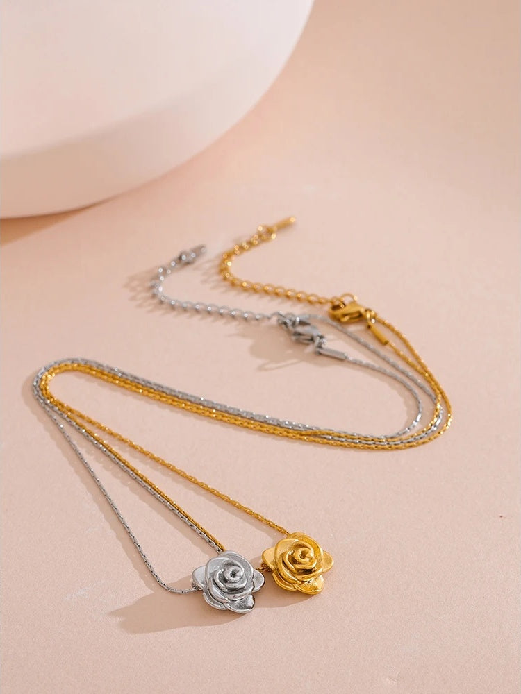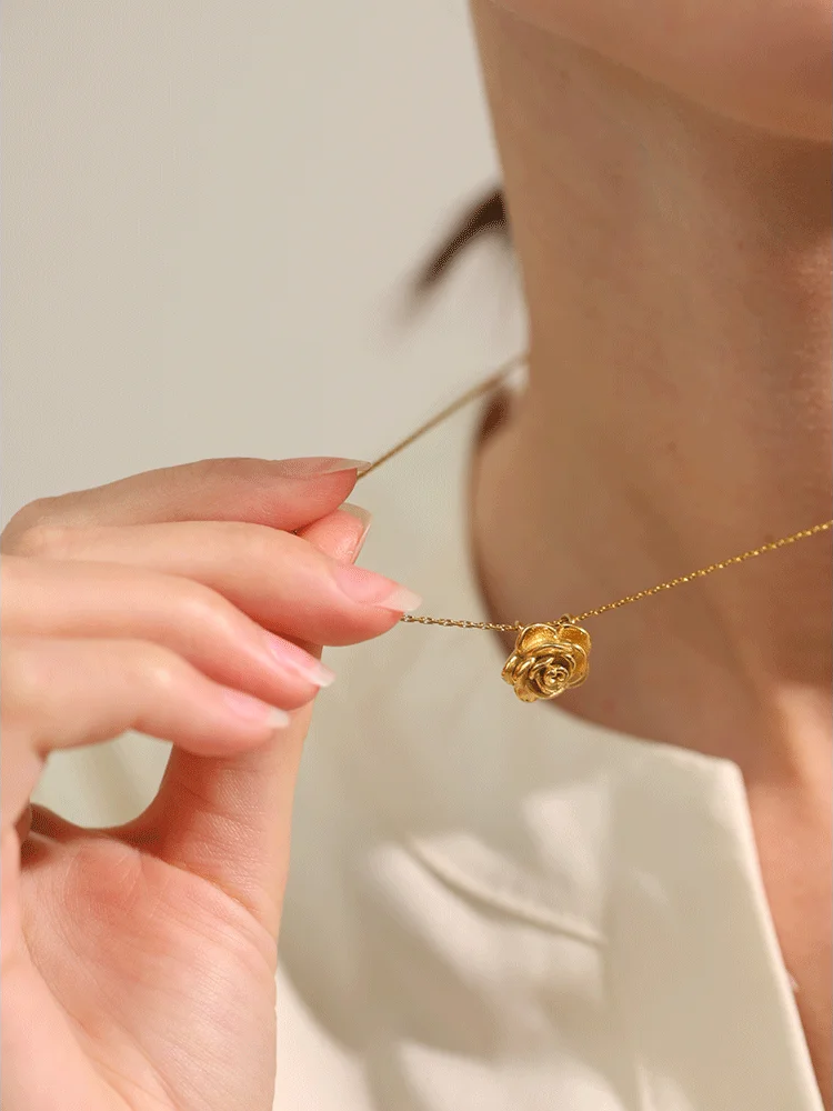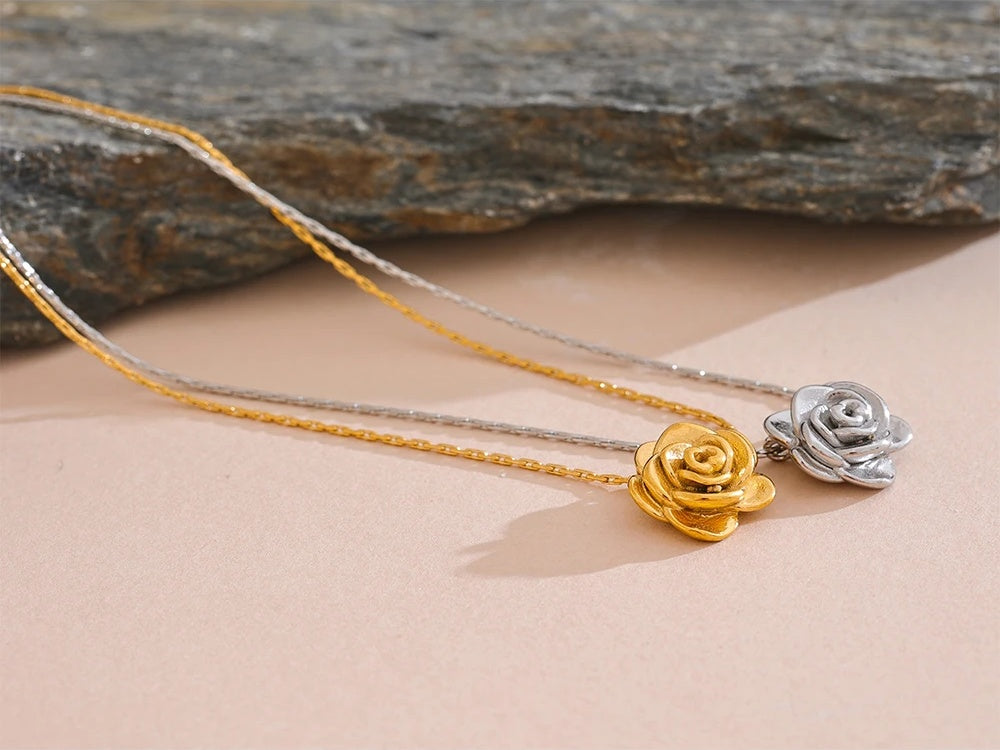 Crafted from durable stainless steel with a high-quality 18K gold plating, this pendant necklace features a detailed three-dimensional flower design. The waterproof finish ensures long-lasting wear and brilliance, making it suitable for everyday use. Designed with a trendy plant motif, the lightweight metal construction offers both comfort and style. Compatible with various chain types, this necklace is a versatile accessory for women seeking elegant, modern jewelry.