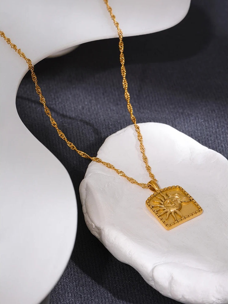 Elevate your everyday style with a celestial sun pendant that blends modern geometry and refined minimalism. Crafted by Hoops & Gems in premium stainless steel and finished with PVD real gold plating, this sun pendant necklace delivers a luminous, long-lasting glow that complements everything from crisp shirting to evening silhouettes.