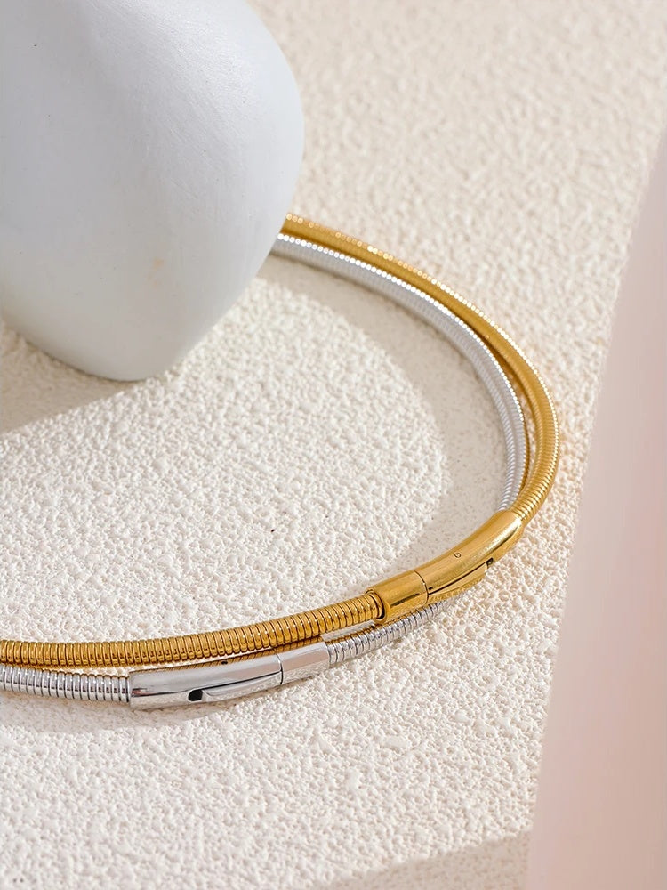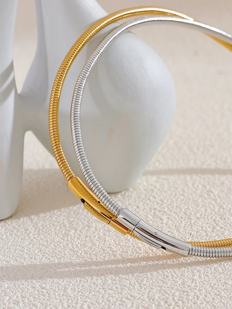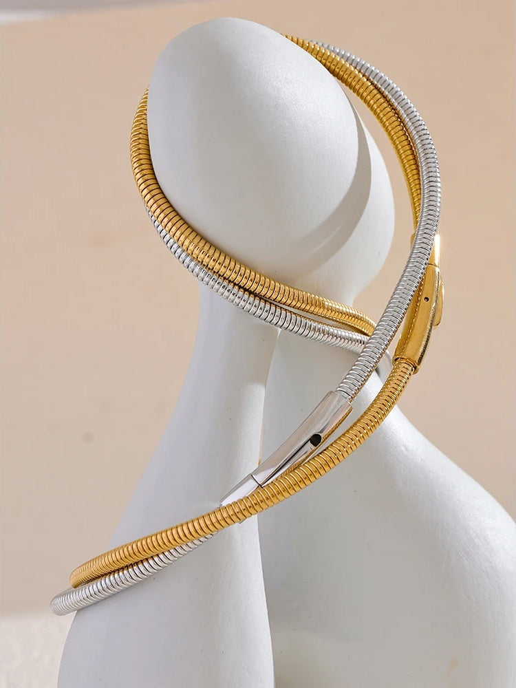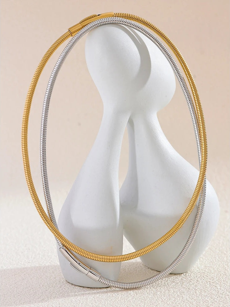 Elevate your everyday with a sleek collar torques necklace crafted for modern minimalists. Made from high-grade stainless steel and finished with durable 18K PVD plating, this geometric open-collar design brings clean lines and understated polish to any look. Its waterproof construction and scratch-resistant finish help maintain a long-lasting shine through daily wear.