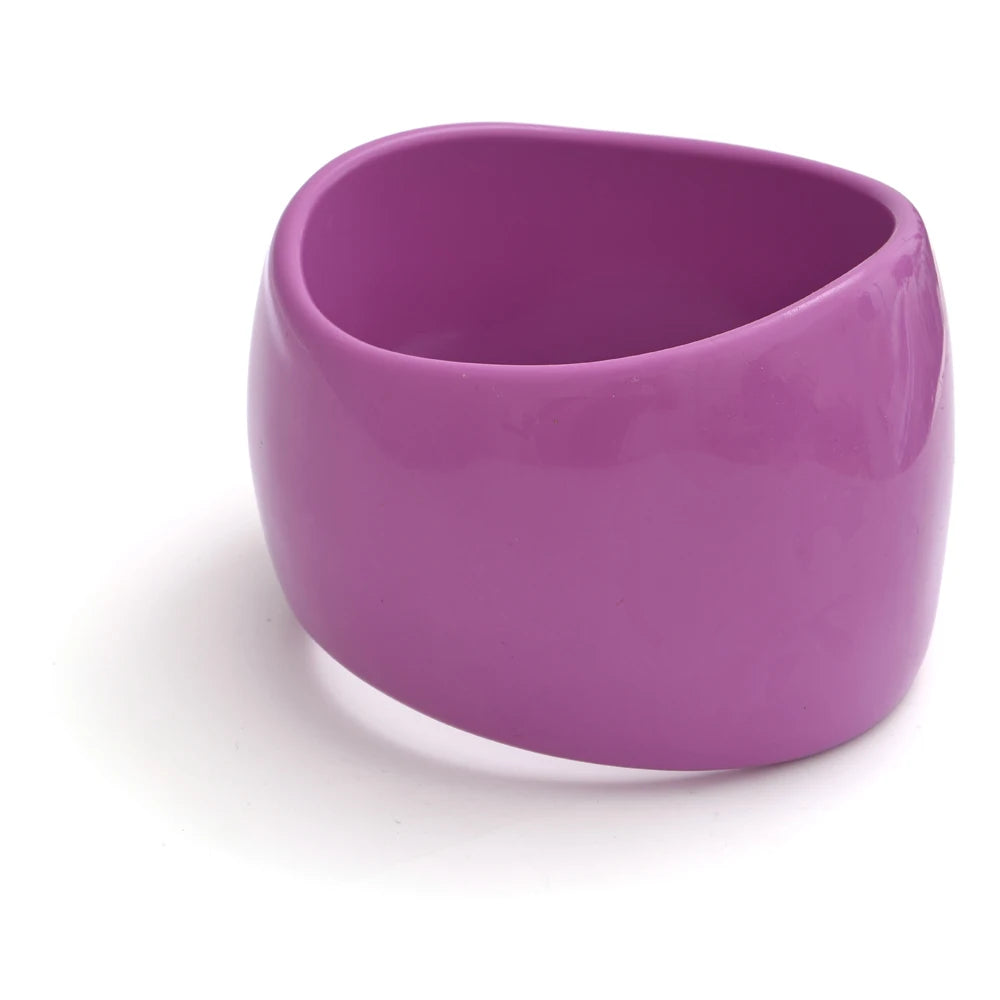 Featuring a bold geometric design, this wide bangle bracelet is crafted from durable resin for a lightweight feel. Available in a variety of vibrant colors, it offers a striking accessory choice for casual or party wear. The smooth, polished finish enhances its modern aesthetic, making it a versatile addition to any summer fashion ensemble.